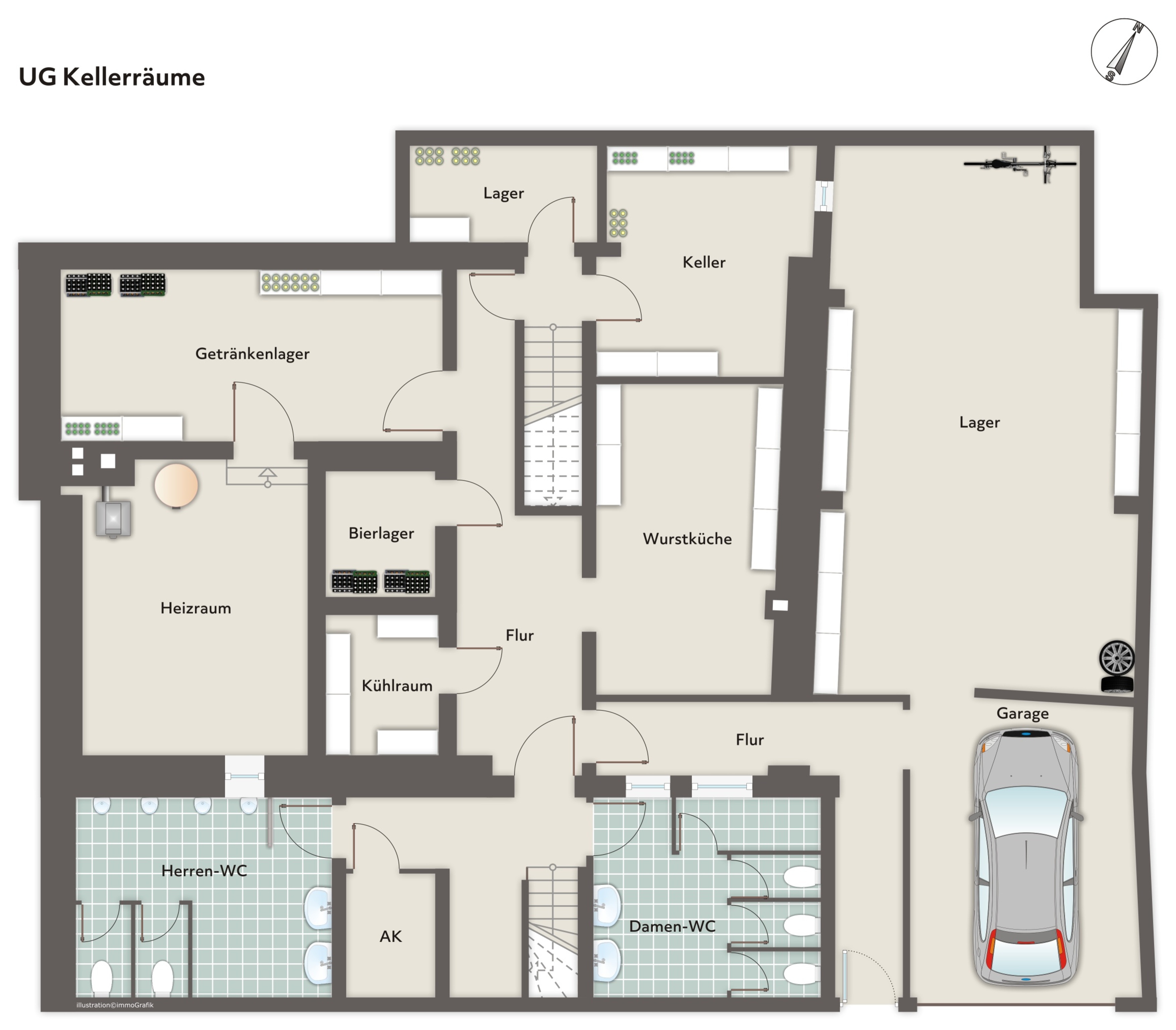 + Mehrere Kühl-/ sowie Kellerräume im UG