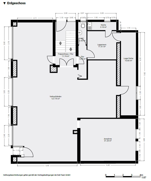 - Holzboden bzw. Betondecke im Gewerbe EG